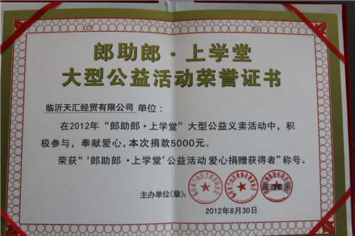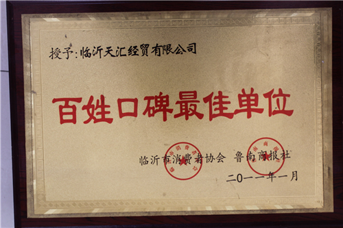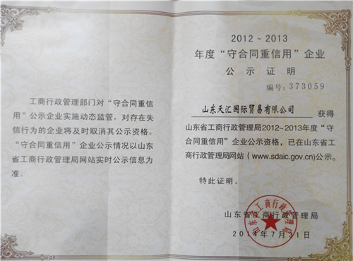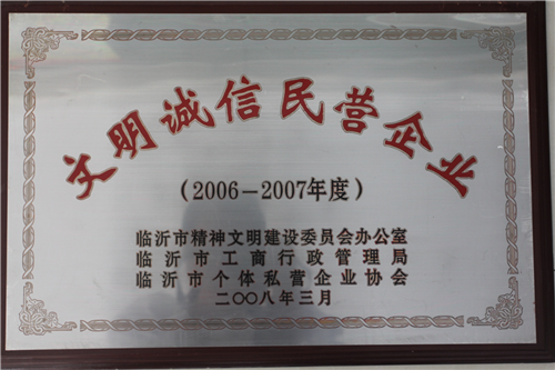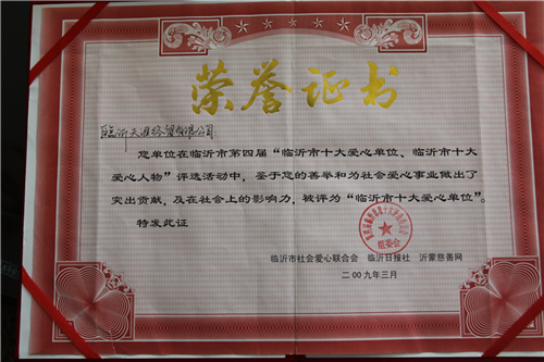 九游会登录热心公益事业,积极回报社会,公司先后荣获“山东省青年文明号”“山东省建设者”“山东省消费者满意单位”“全国诚信经营示范商户”"山东省守合同重信用企业"“AAA级诚信企业”“山东省爱国拥军模范单位”等荣誉称号。